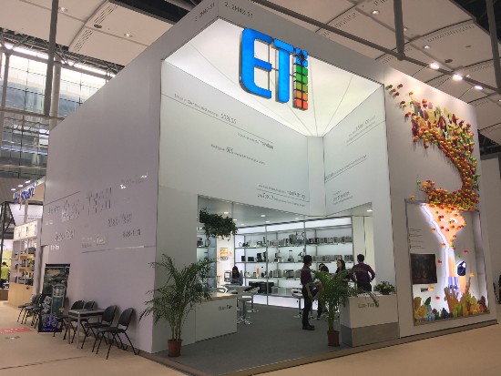 本次展位裝修,我們在原有的框架上做了大部分創(chuàng)新設(shè)計,加大了成本的投入,著力塑造中高端產(chǎn)品企業(yè)形象,突出“綠色主打產(chǎn)品”概念。外墻以公司最新研發(fā)的果汁機(jī)為圖像,塑造了一個巨大的3D果汁機(jī),讓客商一眼就能看出我司的行業(yè)與主打產(chǎn)品。同時,巨大的ETi標(biāo)志高懸于展位正門上方,對品牌形象宣傳起到了積極而直接的推動作用。展位裝修整體形象突出,貫穿綠色智能概念于一體,將公司品牌刻化得簡單鮮明,吸引了廣大客商的眼球,駐足忘返的人群成了廣交會上一道亮麗的風(fēng)景。