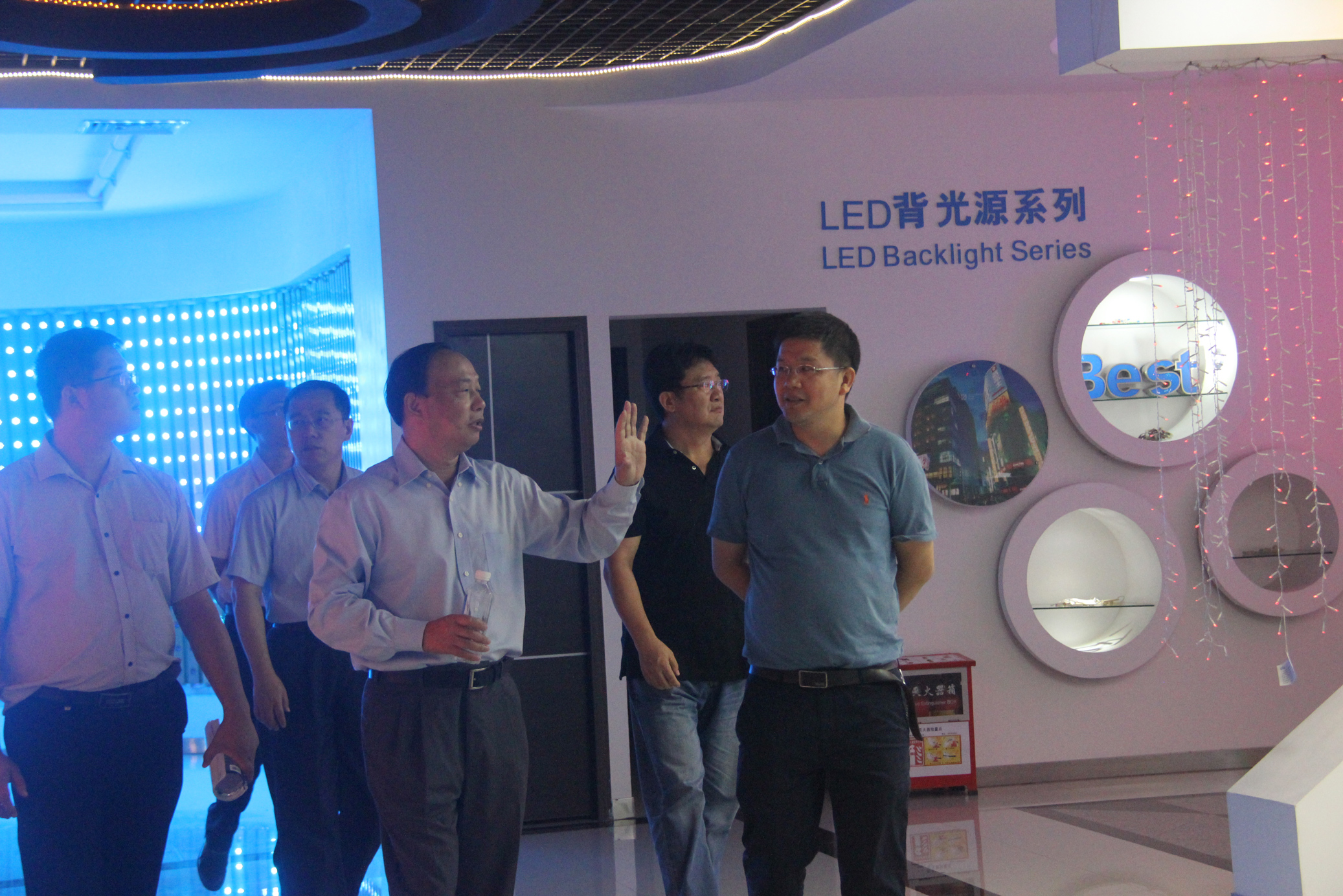 在王冬雷董事長的帶領(lǐng)下,邱主任一行參觀了我司LED光電展廳。從LED上游的外延和芯片,到中游的封裝和模組,再到下游的照明及顯示應(yīng)用,以及LED電源產(chǎn)業(yè)配套產(chǎn)品,王冬雷詳細(xì)介紹了Galaxy銀河國際光電產(chǎn)業(yè)“一條龍”式的LED全產(chǎn)業(yè)鏈布局。不僅展示了公司LED產(chǎn)業(yè)的發(fā)展軌跡,更展現(xiàn)了企業(yè)的雄厚實(shí)力和發(fā)展?jié)摿?。