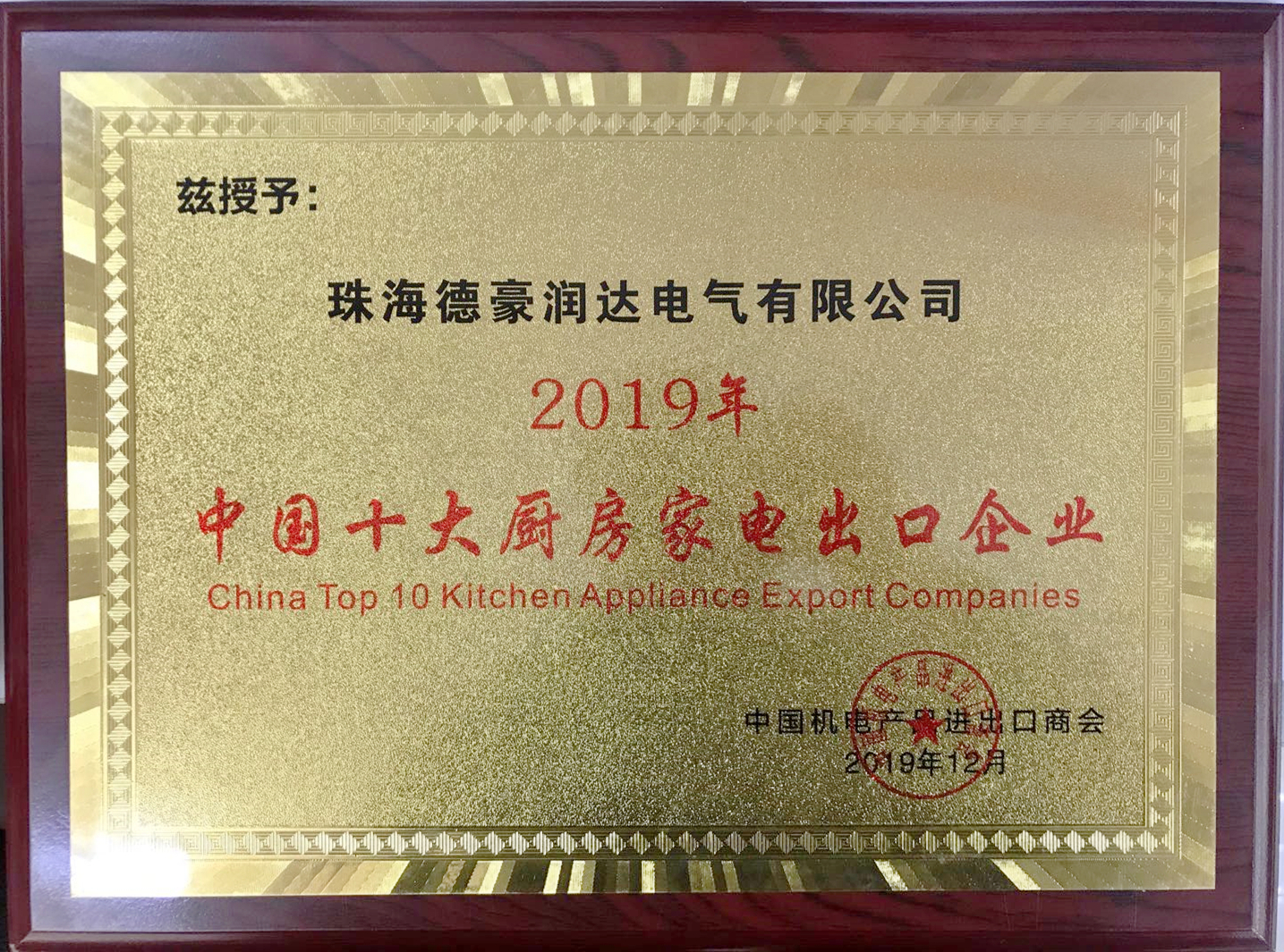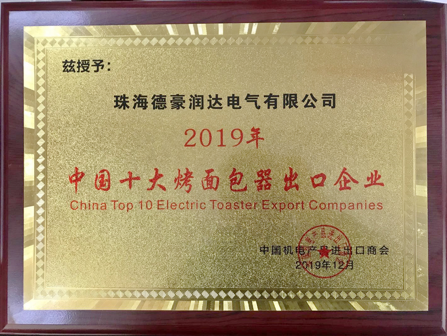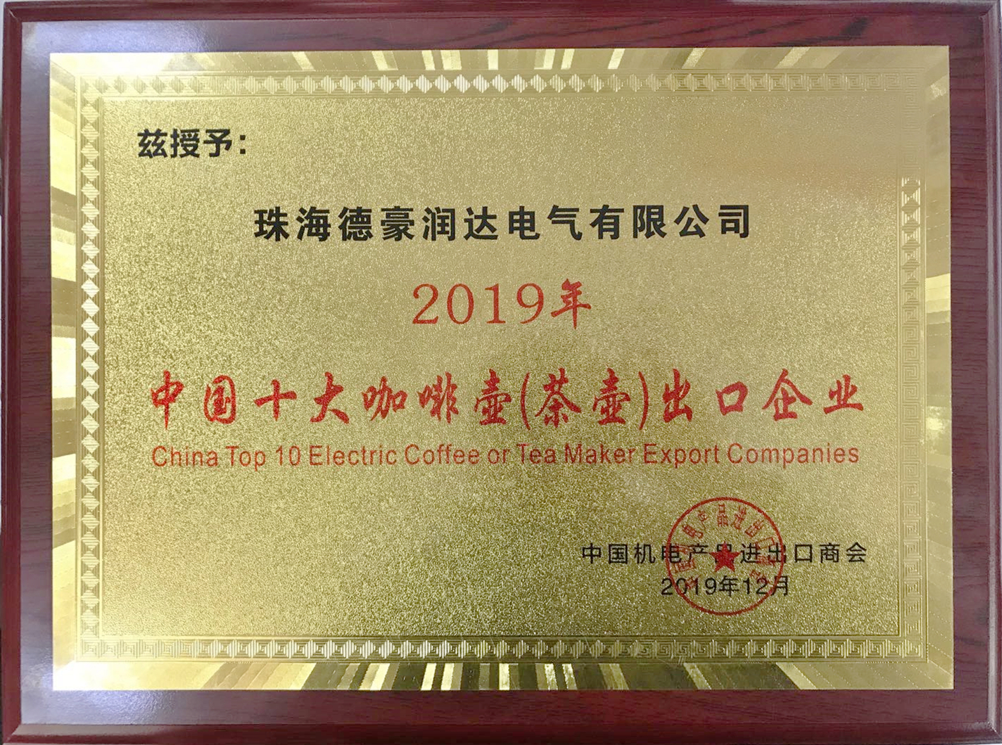 12月4日,第七屆中國電子家電企業(yè)國際化高峰論壇在浙江余姚成功舉辦。會議期間,中國機電產品進出口商會隆重發(fā)布了“一帶一路”優(yōu)勢企業(yè)——2019中國電子家電出口百強企業(yè)名單。我司子公司珠海Galaxy銀河國際電氣有限公司榜上有名,入選“2019年中國十大廚房家電出口企業(yè)”“2019年中國十大咖啡壺(茶壺)出口企業(yè)”“2019年中國十大烤面包器出口企業(yè)”“2019年中國十大電烤箱出口企業(yè)”四大榜單,與美的、格蘭仕、蘇泊爾、新寶等老牌勁旅爭奇斗艷。